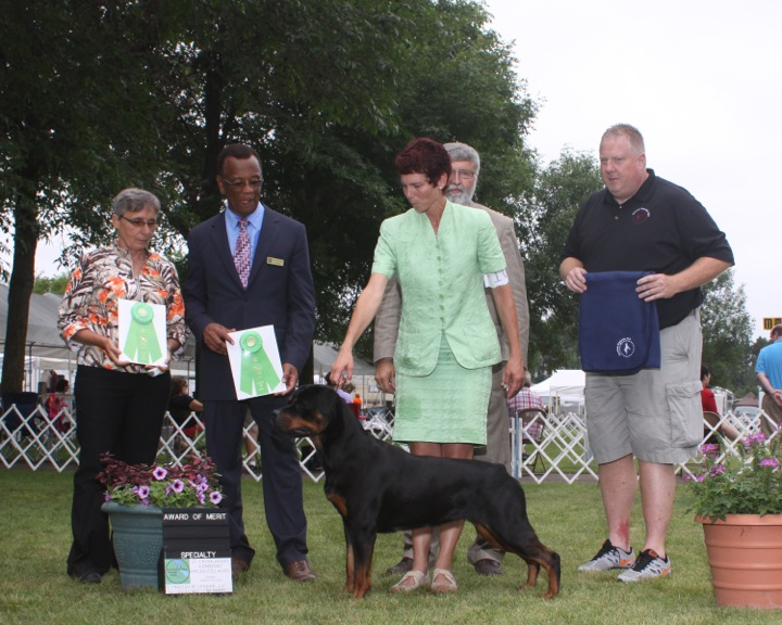 - August 22, 2014, Takoda earns an Award of Merit under judge, James Noe at the Northstar Independent Rottweiler Specialty.